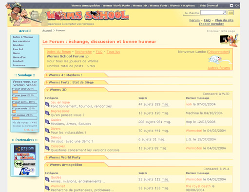 Parcque si j'ai bonne mémoire le forum n'était pas organisé, y'avait pas de catégories, tous les topics étaient les uns à la suite des autres, que se soit un topic d'aide pour wa ou un bug d'installation de worms 3D.
