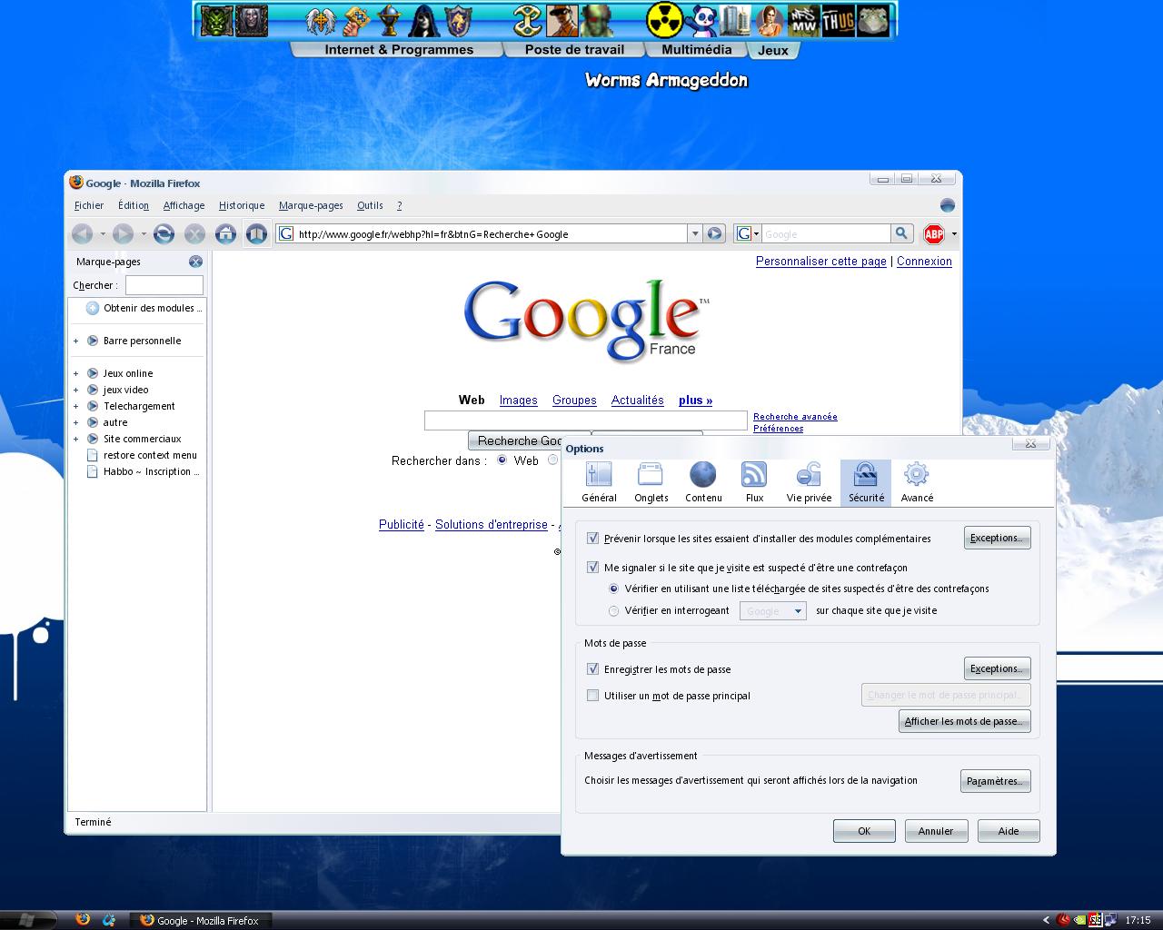 Alors j'avais écrit un début d'explication sur les extensions de mon firefox, mais j'ai fait tué ma fenêtre au clavier sans savoir comment. Du coup j'ai perdu mon message (j'avais qu'un onglet d'ouvert) et j'ai eu la flemme de tout réécrire.