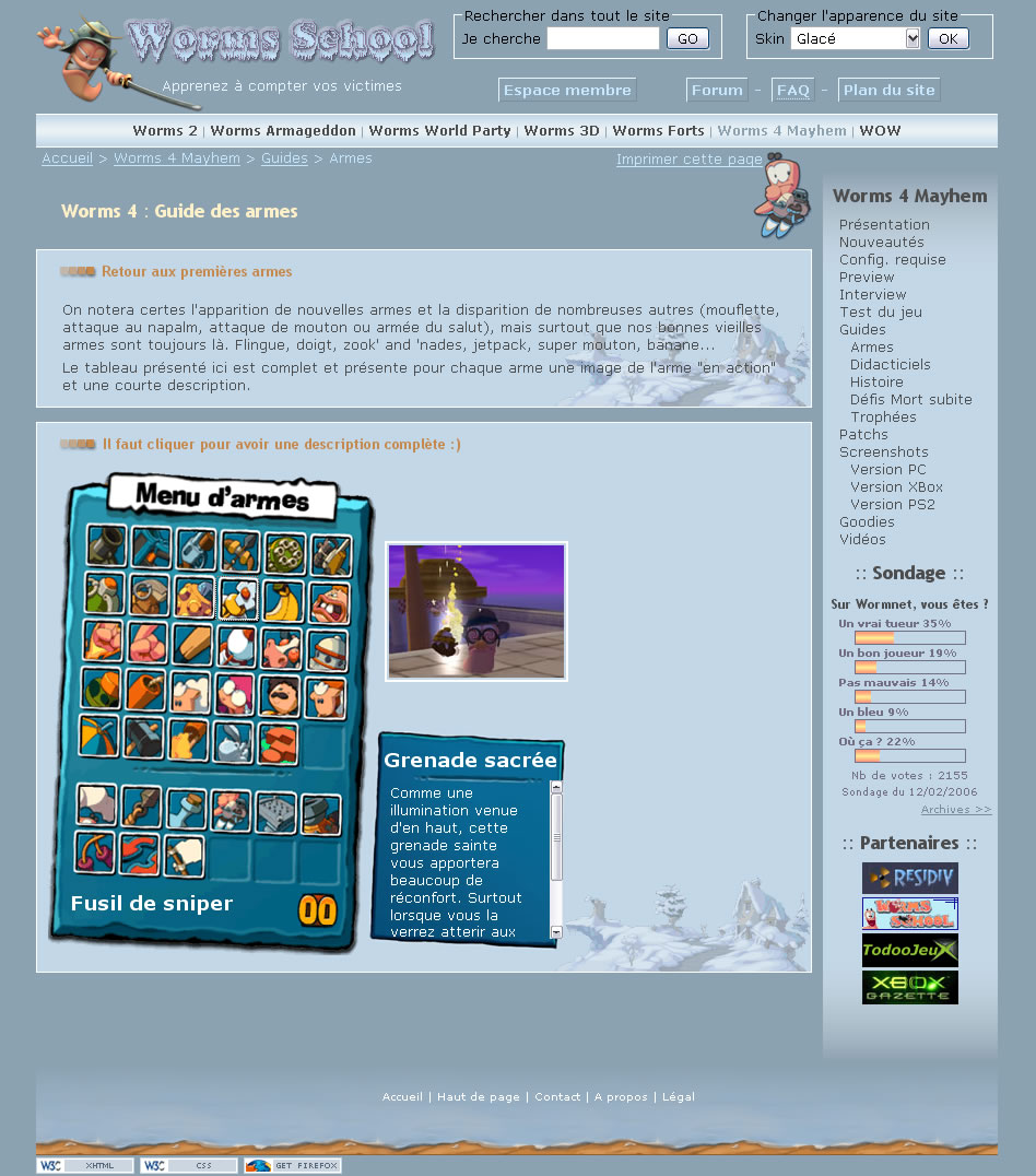 WWP, de nouveaux liens et une grande nouveauté pour les missions de Worms Armageddon. En effet, j'ai commencé à ajouter la soluce des missions sous forme de replay. Comme ça vous pouvez voir le résultat en vidéo. Et merci à Yéti pour m'avoir encouragé à refaire complètement la soluce de la mission